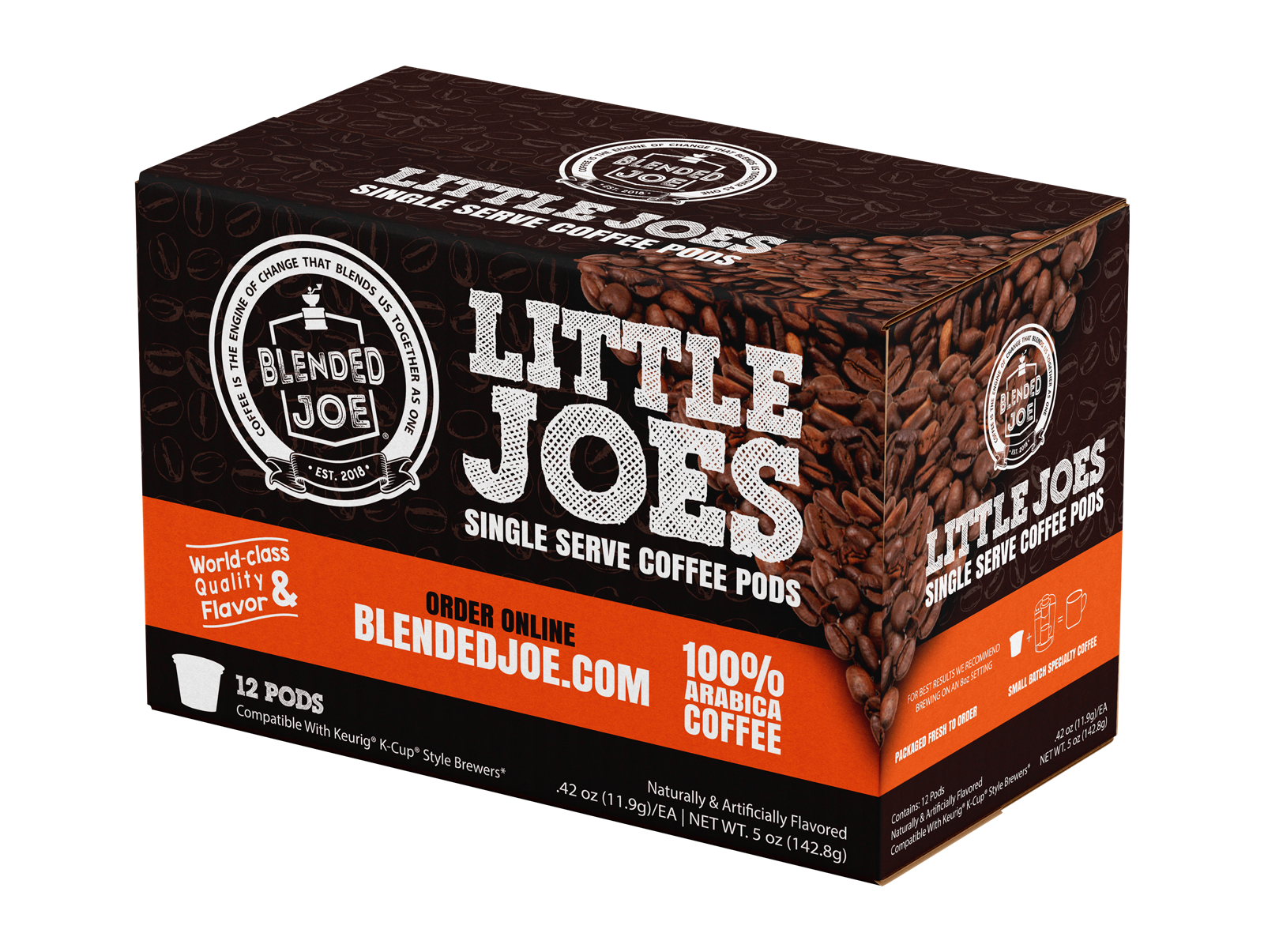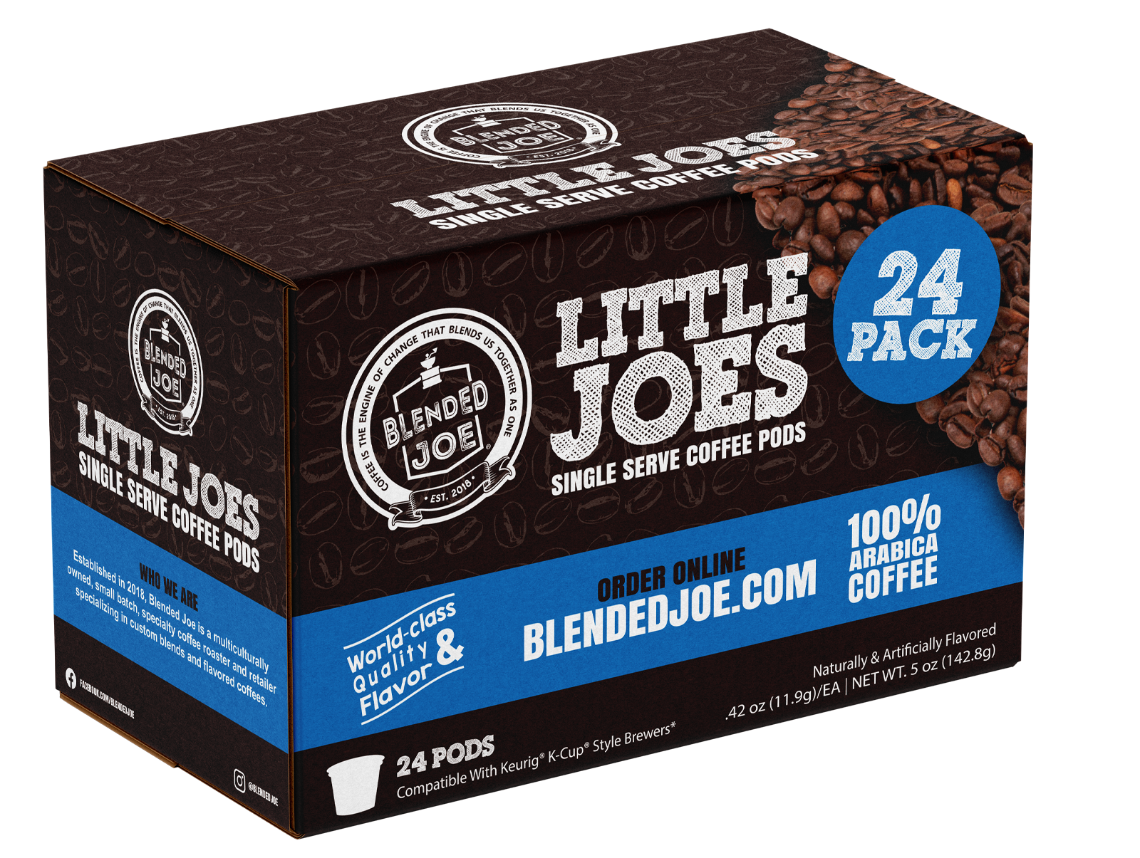 When I joined Blended Joe in 2020, the goal was to build a visual identity that felt warm, welcoming, and instantly recognizable. The brand needed more than just packaging — it needed a full visual system that could grow across coffee bags, K-Cups, menus, signage, retail boxes, and eventually a storefront. Each flavor had its own vibe, but everything still had to feel like one cohesive brand.